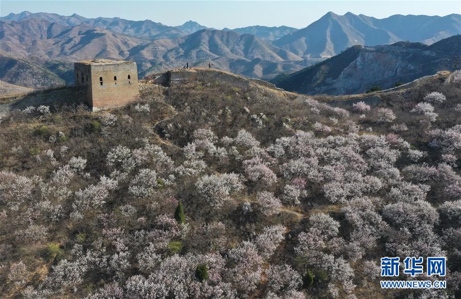 4月5日拍攝的遷安市大崔莊鎮(zhèn)長(zhǎng)城景區(qū)景色(無人機(jī)照片)。新華社記者楊世堯攝