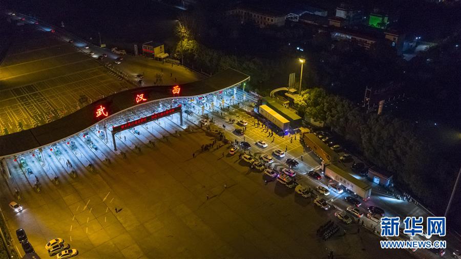 4月8日凌晨,車輛通過(guò)武漢西高速收費(fèi)站(無(wú)人機(jī)拍攝)。 新華社記者 沈伯韓 攝