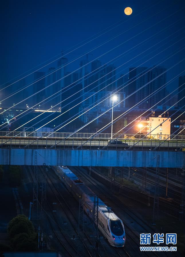 4月8日,一列動車從武漢動車段駛出,開往漢口站迎接旅客。 新華社記者 肖藝九 攝