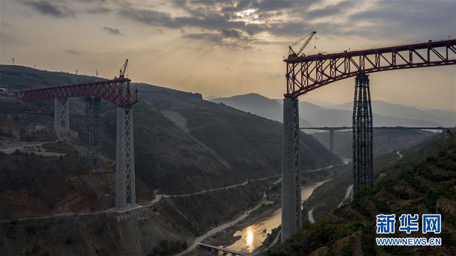4月8日清晨,工人在中老鐵路元江特大橋上進(jìn)行鋼桁梁架設(shè)作業(yè)(無(wú)人機(jī)照片)。4月7日,中老鐵路全線重點(diǎn)控制性工程——元江特大橋迎來(lái)關(guān)鍵節(jié)點(diǎn),主橋鋼桁梁正式“邁”過(guò)154米高的主橋墩,這是世界同類(lèi)鐵路橋梁第一高墩。元江特大橋位于云南省元江縣,采用上承式連續(xù)鋼桁梁跨越峽谷,全長(zhǎng)832.2米,建成后,其249米的主跨也將刷新國(guó)內(nèi)同類(lèi)橋梁跨度紀(jì)錄。新華社記者江文耀攝