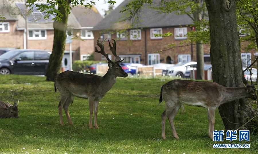 4月8日,在英國(guó)倫敦東部一個(gè)居民區(qū),附近公園里的鹿在草坪上駐足。隨著新冠疫情在英國(guó)的擴(kuò)散,政府要求人們減少不必要的外出。倫敦東部一個(gè)居民區(qū)附近公園里原來(lái)散養(yǎng)的鹿紛紛從公園走出來(lái),或吃草或接受附近居民的喂食,成為特殊時(shí)期居民區(qū)里的新“客人”。新華社記者韓巖攝
