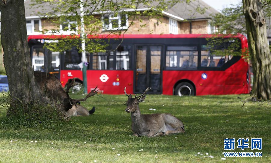 4月8日,在英國(guó)倫敦東部一個(gè)居民區(qū),附近公園里的鹿在草坪上休息。隨著新冠疫情在英國(guó)的擴(kuò)散,政府要求人們減少不必要的外出。倫敦東部一個(gè)居民區(qū)附近公園里原來(lái)散養(yǎng)的鹿紛紛從公園走出來(lái),或吃草或接受附近居民的喂食,成為特殊時(shí)期居民區(qū)里的新“客人”。新華社記者韓巖攝