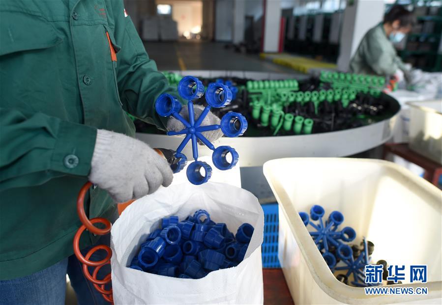4月13日,員工在位于店口鎮(zhèn)的諸暨市風(fēng)帆管業(yè)有限公司注塑車間分揀自動(dòng)化生產(chǎn)線上的管件。新華社記者韓傳號(hào)攝