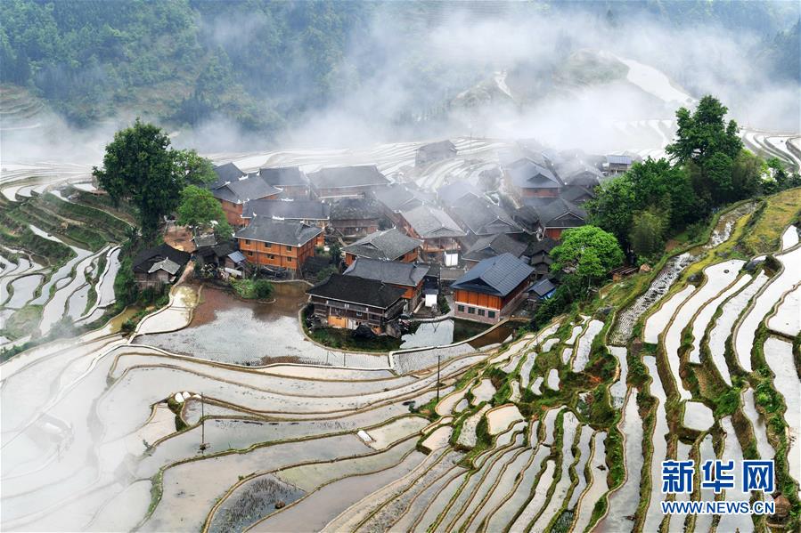 貴州省從江縣加榜鄉(xiāng)黨扭村苗寨景觀(4月17日攝)。貴州省從江縣把人居環(huán)境整治作為脫貧攻堅(jiān)工作的一項(xiàng)重要舉措來抓,對(duì)鄉(xiāng)村規(guī)劃范圍內(nèi)長(zhǎng)期無人居住的危房、廢棄禾倉、棚圈、柴草房和房前屋后的殘?jiān)珨啾诘冗M(jìn)行清理整治,進(jìn)行復(fù)墾復(fù)綠,同時(shí)開展農(nóng)戶衛(wèi)生和村寨環(huán)境整治,做到鄉(xiāng)村環(huán)境干凈、衛(wèi)生、整潔,扮靚美麗鄉(xiāng)村。新華社記者楊文斌攝