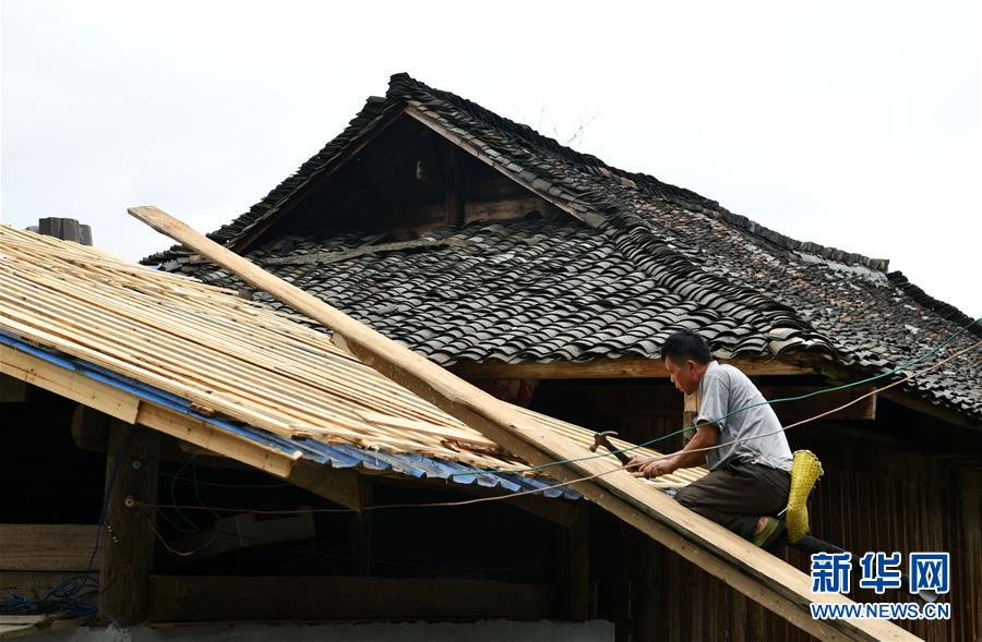 貴州省從江縣加榜鄉(xiāng)黨扭村村民在整治吊腳樓風貌(4月16日攝)。貴州省從江縣把人居環(huán)境整治作為脫貧攻堅工作的一項重要舉措來抓,對鄉(xiāng)村規(guī)劃范圍內(nèi)長期無人居住的危房、廢棄禾倉、棚圈、柴草房和房前屋后的殘垣斷壁等進行清理整治,進行復墾復綠,同時開展農(nóng)戶衛(wèi)生和村寨環(huán)境整治,做到鄉(xiāng)村環(huán)境干凈、衛(wèi)生、整潔,扮靚美麗鄉(xiāng)村。新華社記者楊文斌攝