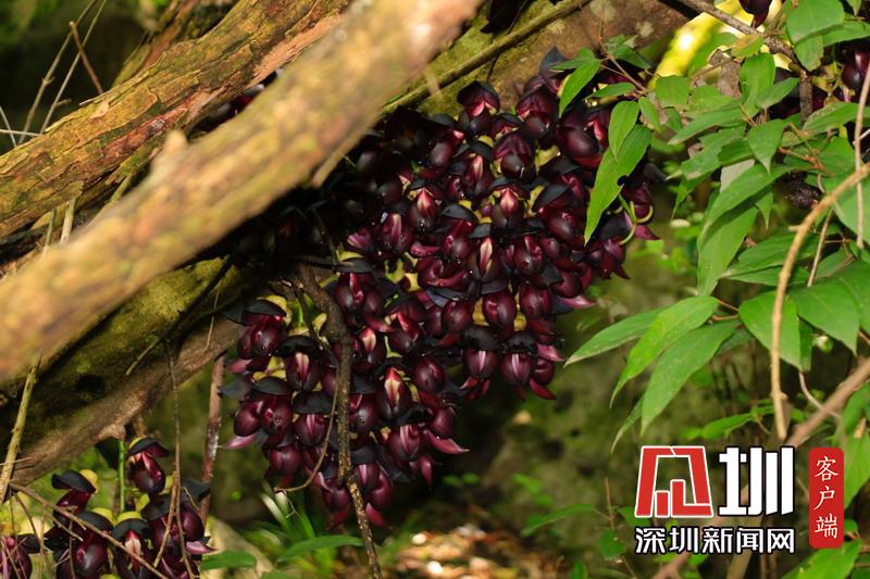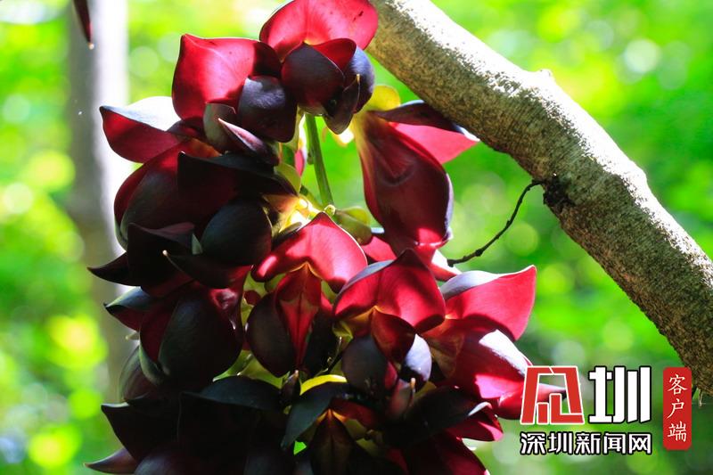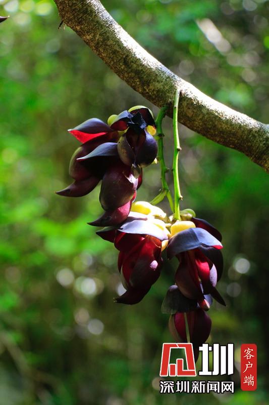 禾雀花序懸掛于悠長(zhǎng)盤曲的老莖上,吊掛成串,每串二、三十朵,串串下垂。