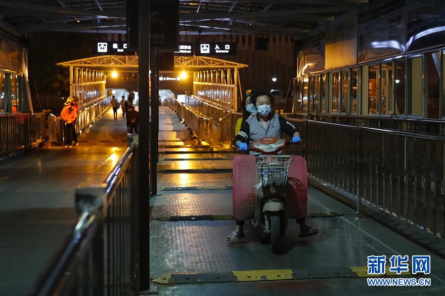 4月22日,市民騎電動車乘坐武漢長江客運(yùn)輪渡出行。為建立與經(jīng)濟(jì)社會發(fā)展和疫情防控需要相適應(yīng)的運(yùn)輸服務(wù)保障機(jī)制,保障市民出行需求,從4月22日起,武漢城市公共交通有序恢復(fù)全線網(wǎng)運(yùn)營。新華社記者沈伯韓攝