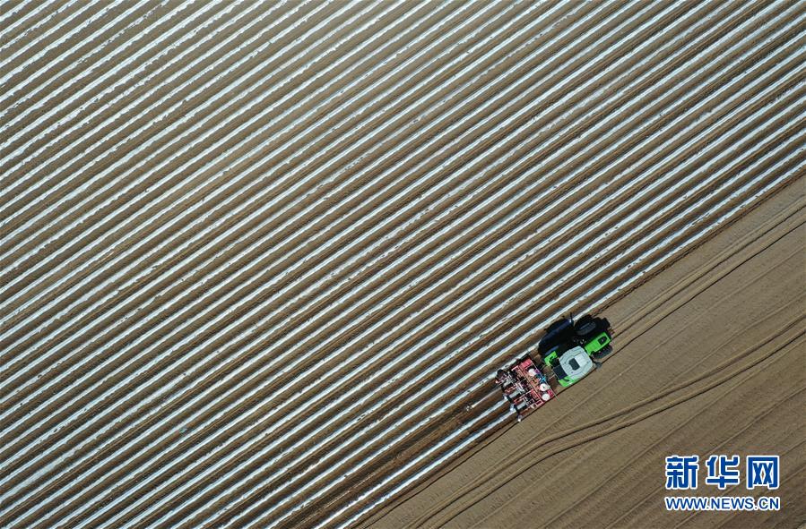 4月25日,灤南縣東黃坨鎮(zhèn)新戶村農(nóng)民使用拖拉機給準備栽植煙薯秧苗的土地開溝覆膜(無人機照片)。近年來,河北省灤南縣利用當?shù)赝寥篮蜌夂蛱攸c,引導(dǎo)農(nóng)民因地制宜發(fā)展煙薯種植,取得良好效果。目前該縣煙薯種植面積達3萬多畝,每畝年收入達5000多元。新華社記者楊世堯攝