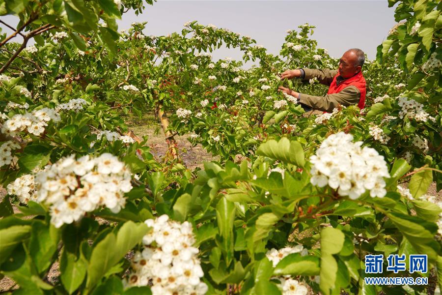 4月26日,農(nóng)民在河北省清河縣馬屯紅果種植專業(yè)合作社的山楂種植區(qū)內(nèi)忙碌。4月下旬以來,河北省清河縣2萬余畝山楂樹競(jìng)相開花,成為一道亮麗的風(fēng)景線。清河縣年產(chǎn)山楂7.5萬余噸,山楂種植已成為當(dāng)?shù)剞r(nóng)民的重要增收途徑。新華社記者牟宇攝