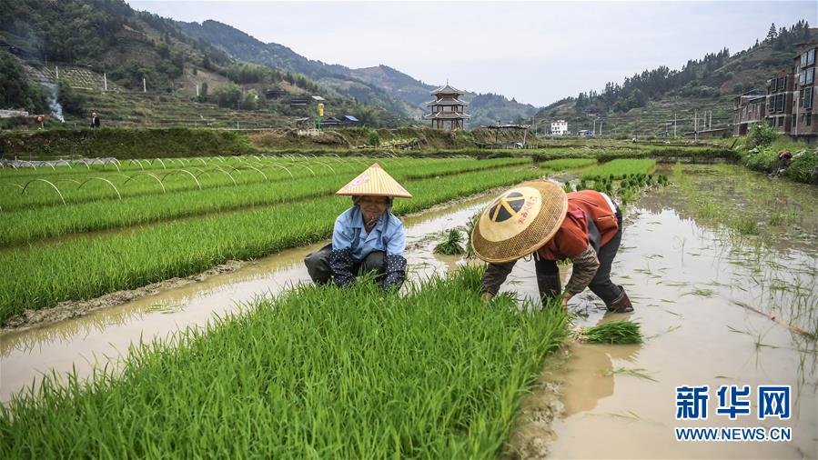 廣西三江侗族自治縣八江鎮(zhèn)平善村村民栽種早稻(4月25日攝)。目前,廣西柳州市三江侗族自治縣群眾抓住時(shí)令,搶種早稻,培育靈芝和果蔬等經(jīng)濟(jì)作物,全力發(fā)展生產(chǎn),決戰(zhàn)脫貧攻堅(jiān)。三江侗族自治縣地處滇黔桂石漠化片區(qū),是國(guó)家扶貧開發(fā)工作重點(diǎn)縣。新華社記者張愛林?jǐn)z