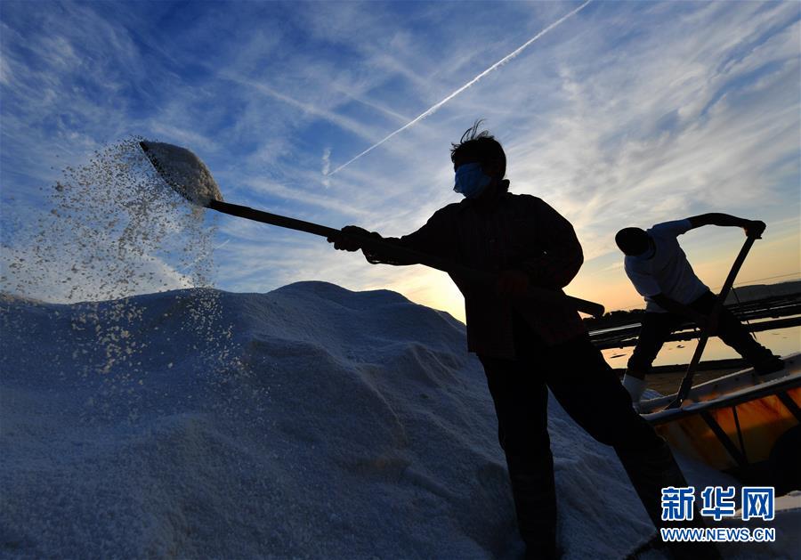 4月27日,莆田鹽場的工人在勞作。莆田鹽場位于福建省莆田市秀嶼區(qū)東嶠鎮(zhèn),辛勤勞作的鹽工、縱橫交錯的曬鹽池,共同構成如畫的風景。新華社記者魏培全攝