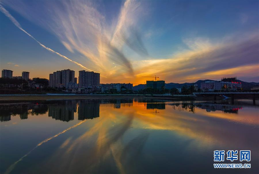 晚霞倒映在流經(jīng)翁源縣城的滃江(4月27日攝)。廣東省韶關(guān)市翁源縣地處南嶺南麓,是國(guó)家重點(diǎn)生態(tài)功能區(qū)。近年來(lái),經(jīng)濟(jì)發(fā)展曾經(jīng)滯后的翁源牢固樹(shù)立綠水青山就是金山銀山的發(fā)展理念,促進(jìn)生態(tài)保護(hù)和經(jīng)濟(jì)社會(huì)協(xié)調(diào)發(fā)展。新華社記者劉大偉攝