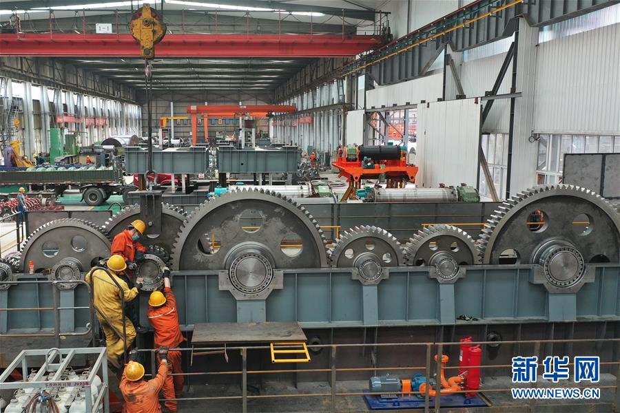 4月27日,工人在唐山市豐潤區(qū)一家起重設(shè)備制造企業(yè)生產(chǎn)車間工作。河北省唐山市豐潤區(qū)裝備制造業(yè)企業(yè)全面復(fù)工復(fù)產(chǎn)以來,各企業(yè)在做好疫情防控的同時(shí),開足馬力加緊生產(chǎn),趕制訂單滿足需求,助推經(jīng)濟(jì)發(fā)展。新華社記者楊世堯攝