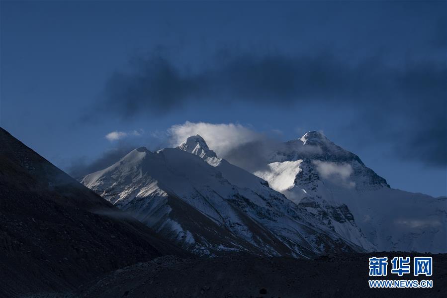 日出時,珠峰籠罩在云霧里(4月28日攝)。新華社記者晉美多吉攝