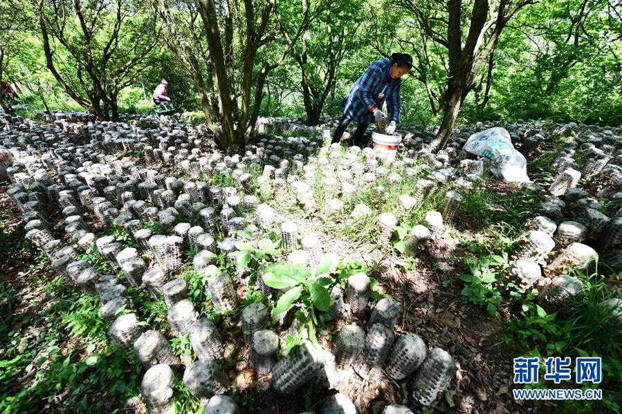 村民在劍河縣岑松鎮(zhèn)巫亮村林下仿野生食用菌基地采摘木耳(4月27日攝)。近年來(lái),貴州省黔東南苗族侗族自治州劍河縣充分利用林下土地培育木耳,既不耽誤林木生長(zhǎng),又發(fā)展了食用菌產(chǎn)業(yè)。目前,該縣采取“龍頭企業(yè)+合作社+貧困戶(hù)”的合作模式,大力推廣林下木耳種植,帶動(dòng)農(nóng)民增收。新華社記者楊文斌攝