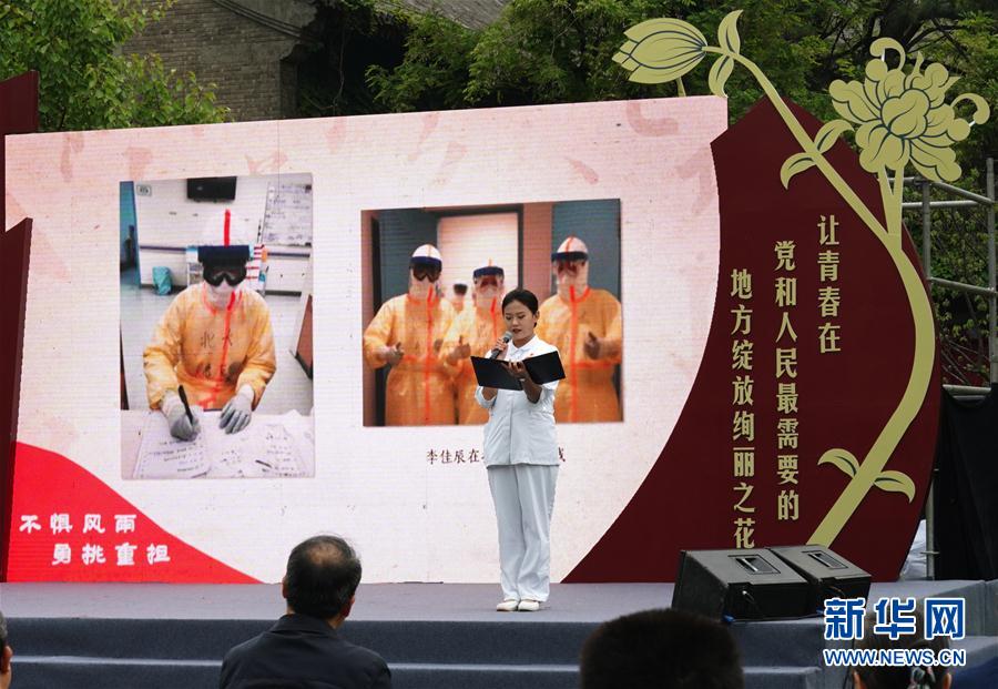 5月4日,北京大學(xué)援鄂醫(yī)療隊代表在北大五四青春詩會上宣誓。 當(dāng)日,北京大學(xué)通過與武漢大學(xué)、西藏大學(xué)、北京大學(xué)研究生支教團聯(lián)合舉辦紀(jì)念五四運動升旗儀式以及北京大學(xué)2020年五四青春詩會等活動,傳承五四精神,紀(jì)念五四青年節(jié)。 新華社記者 張晨霖 攝