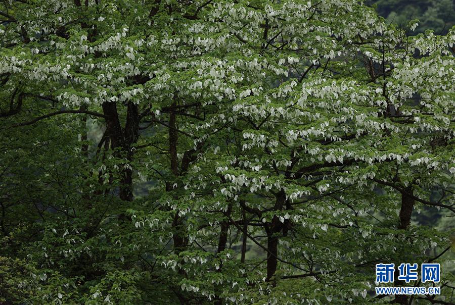 位于四川省滎經(jīng)縣的龍蒼溝國家森林公園里,鴿子花盛開(5月4日攝)。目前,位于四川省大相嶺山脈東麓北坡的龍蒼溝國家森林公園里,約8萬畝鴿子花盛開,猶如鴿群展翅欲飛。鴿子花即珙桐花,珙桐是珍稀植物,有著植物“大熊貓”“活化石”之稱,是國家一級保護(hù)植物,也是著名的觀賞植物。2008年,華中農(nóng)業(yè)大學(xué)、湖北民族學(xué)院和四川省縈經(jīng)縣林業(yè)部門聯(lián)合對龍蒼溝森林公園的珙桐進(jìn)行了種群生態(tài)學(xué)調(diào)查,發(fā)現(xiàn)珙桐在這里共分布約8萬畝,集中成片分布近4萬畝。珙桐面積之大、株數(shù)之多、密度之高,十分罕見。新華社記者 江宏景 攝