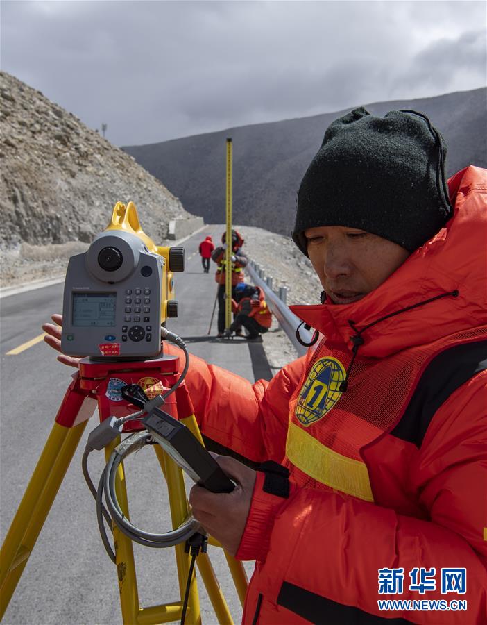 國測一大隊隊員在西藏定日縣曲當鄉(xiāng)境內(nèi)進行水準測量(4月18日攝)。水準測量是一種利用提供水平視線的儀器(如水準儀、水準標尺),測定地面不同點之間的高差,并以此推算高度的一種方法,是經(jīng)典大地測量的重要技術(shù)之一。在目前正在進行的2020珠峰高程測量中,部分國測一大隊隊員承擔了水準測量的任務(wù)。新華社記者普布扎西攝