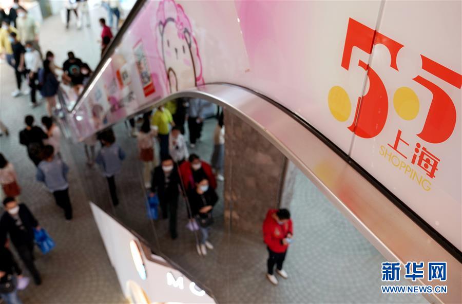 上海一家商場布置的“五五購物節(jié)”標(biāo)識(5月5日攝)。5月4日晚,上海首次啟動大規(guī)模商業(yè)促銷活動“五五購物節(jié)”,多家在線新經(jīng)濟企業(yè)參與,通過線上流量優(yōu)勢反哺線下賣場,實現(xiàn)電商與實體零售融合互動,激活消費潛力、驅(qū)動消費復(fù)蘇。據(jù)“上海發(fā)布”的消息,截至5日14時12分,“五五購物節(jié)”上海地區(qū)消費支付總額已超100億元。新華社記者劉穎攝