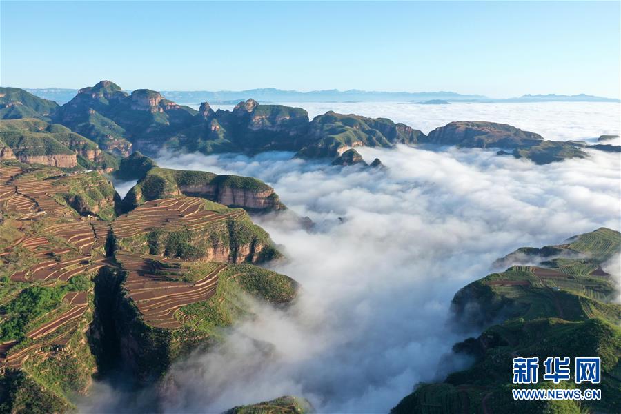 這是5月5日在河北省沙河市劉石崗鄉(xiāng)漸凹村拍攝的云海景觀(無(wú)人機(jī)照片)。5月5日,雨后的河北省沙河市劉石崗鄉(xiāng)漸凹村云霧飄渺,村莊、山巒、梯田在云海中若隱若現(xiàn),構(gòu)成一幅美麗畫卷。新華社記者牟宇攝