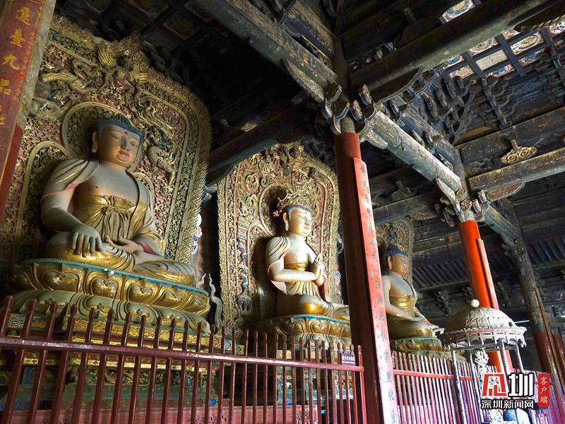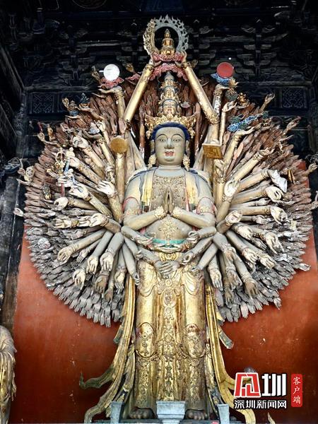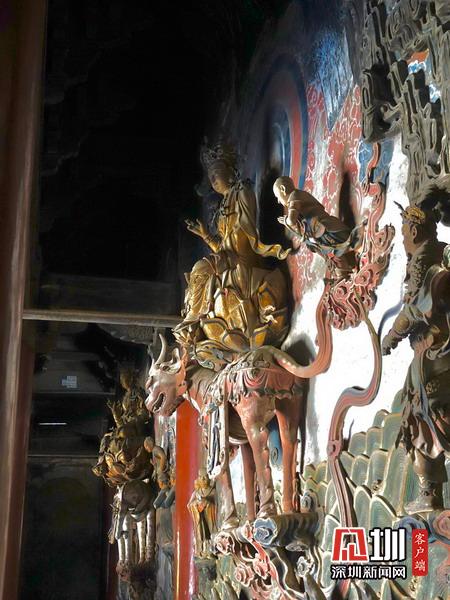 報(bào)恩寺布局結(jié)構(gòu)酷似北京紫禁城,被稱(chēng)為“深山故宮”。寺內(nèi)古木參天,氣象森嚴(yán),飛檐凌空,金碧輝煌。大悲殿中的用整根楠木雕成的千手千眼觀音像、華嚴(yán)藏中的轉(zhuǎn)輪經(jīng)藏和泥塑蟠龍,以及遍布全寺的彩繪壁畫(huà),都是世間罕見(jiàn)的藝術(shù)珍品。李仁奇攝