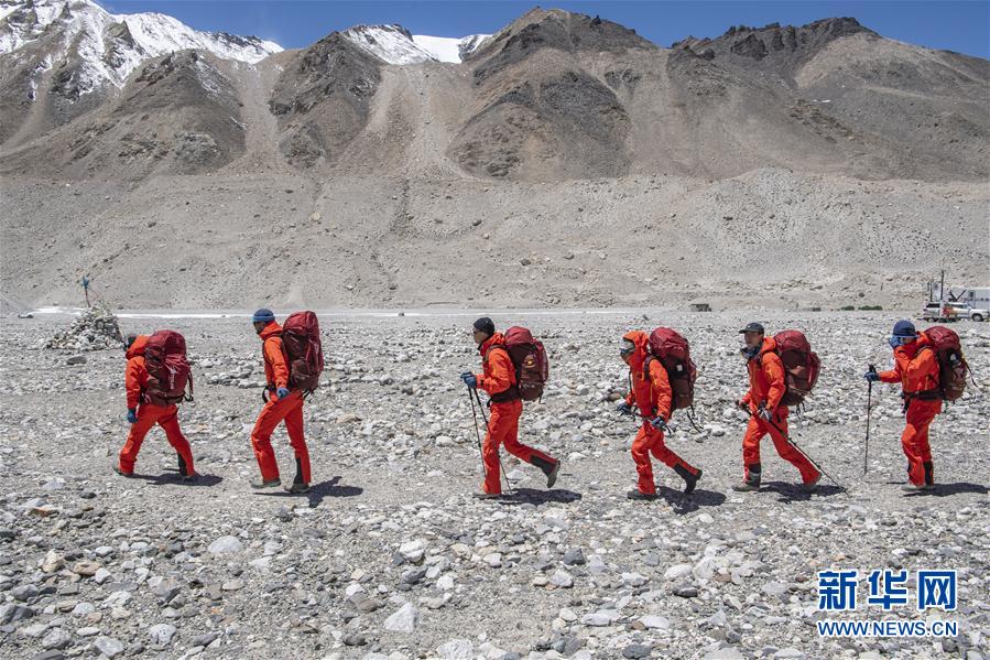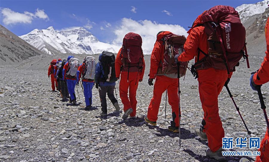 當(dāng)日,2020珠峰高程測量登山隊伍在珠峰大本營舉行出發(fā)儀式。30多名隊員從海拔5200米的大本營向更高海拔出發(fā),開啟珠峰沖頂測量。隊員們力爭抓住近日的天氣窗口,擇日登頂測量。如果成功,這將是我國專業(yè)測繪人員首次登頂珠峰測高。新華社記者普布扎西攝