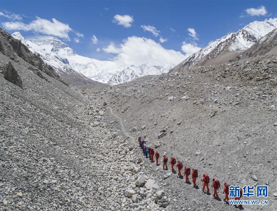 5月6日,登山隊員們離開珠峰大本營,向更高海拔進(jìn)發(fā)。新華社記者普布扎西攝