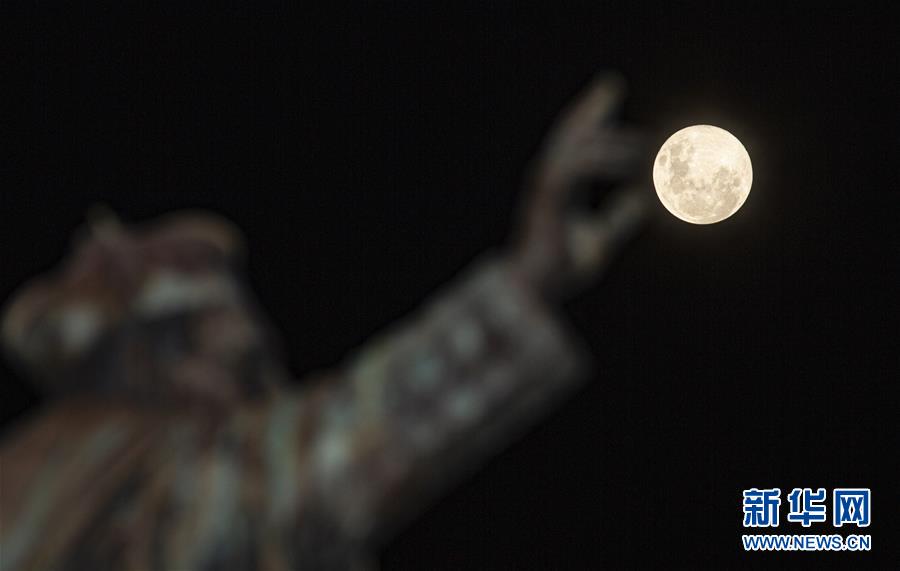 這是5月7日在貴陽拍攝的“超級月亮”?!俺壴铝痢敝傅氖窃铝廖挥诮攸c時剛好出現(xiàn)滿月。新華社記者劉續(xù)攝