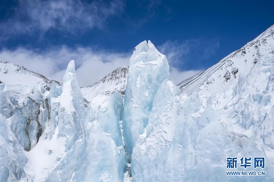 珠峰海拔5800米至海拔6500米的冰塔林(5月9日攝)。從海拔5800米的珠峰過渡營地到海拔6500米的前進營地,冰塔林沿山谷排列,蔚為壯觀。新華社記者孫非攝