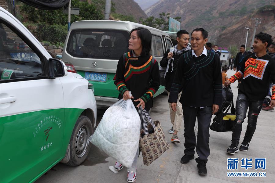 5月12日,四川省昭覺(jué)縣阿土列爾村第一批26戶貧困戶坐上開(kāi)往昭覺(jué)縣易地扶貧搬遷縣城集中安置點(diǎn)的新家,與其他村民道別。新華社記者江宏景攝