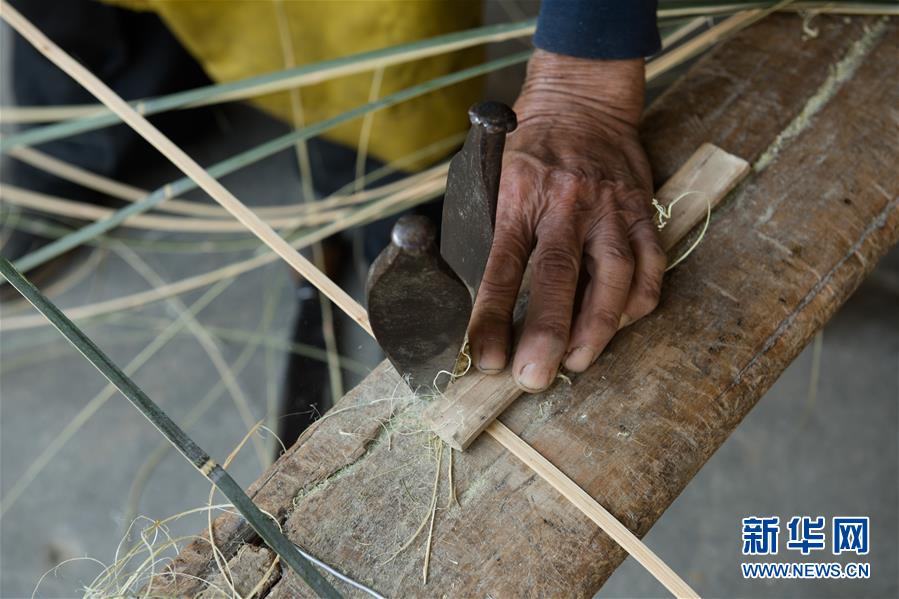 5月12日,浙江諸暨龍溪村的百歲老人蔡渭東在家中處理竹篾。浙江諸暨東和鄉(xiāng)龍溪村有一位102歲的老人蔡渭東,他從12歲開始拜師學(xué)藝,做了90年的篾匠,如今依然耳聰目明,每天堅(jiān)持編織篾器。蔡渭東老人說他舍不得丟掉這份老手藝,也希望年輕人能傳承下去。新華社記者翁忻旸攝