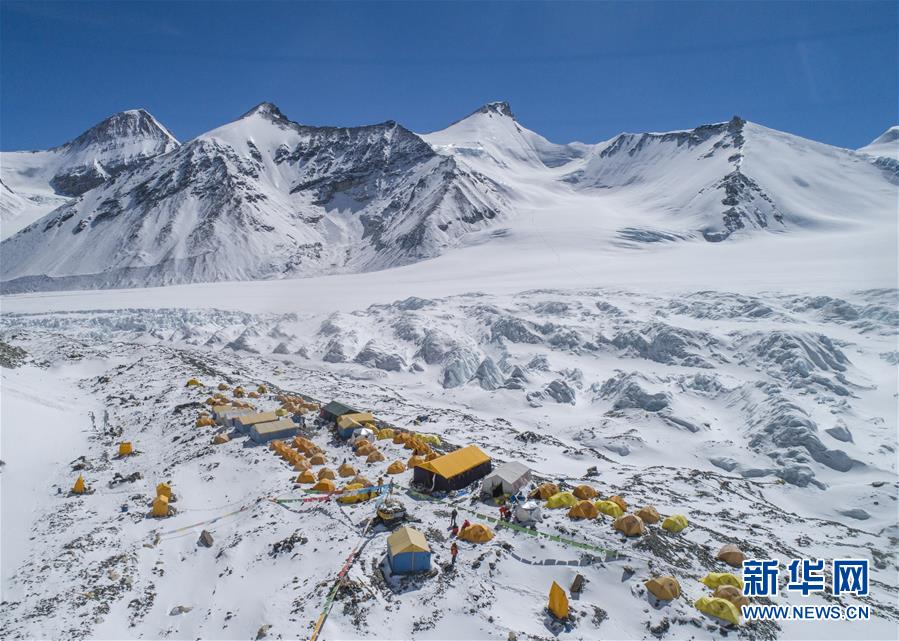 這是海拔6500米的珠峰前進(jìn)營(yíng)地(5月10日無(wú)人機(jī)照片)。新華社記者孫非攝
