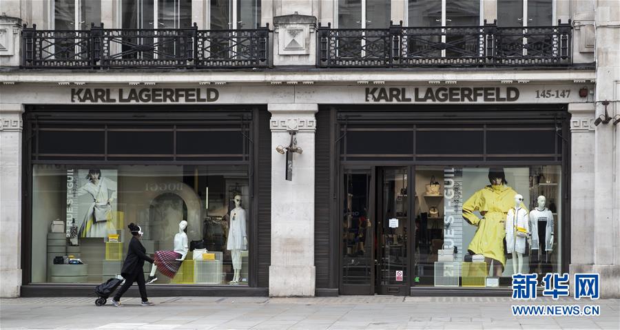 5月12日,一名女子從英國(guó)倫敦?cái)z政街關(guān)閉的店鋪前經(jīng)過(guò)。