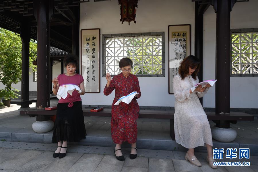 5月13日,潞村繡坊的刺繡愛好者在參加刺繡活動。新華社記者黃宗治攝