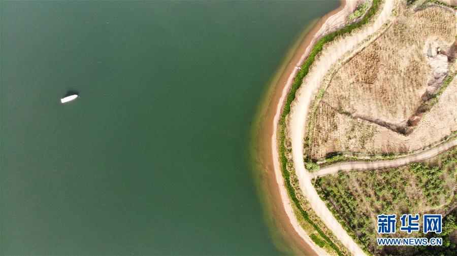 5月13日拍攝的青峰嶺水庫庫區(qū)景色(無人機照片)。新華社記者王凱攝