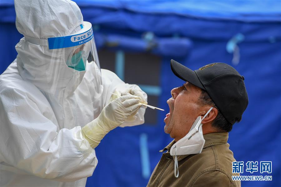 5月15日,在舒蘭市建馨園小區(qū),工作人員為居民采集咽拭子。當日,從吉林市7家市直醫(yī)院抽調的300名護士經培訓后,全部投入到舒蘭市(隸屬于吉林市)核酸采樣工作中。為提供追溯傳染源所必需的核酸檢測相關數據,舒蘭市根據確診病例的活動軌跡,將流調和核酸檢測范圍擴大至本地確診病例和無癥狀感染者的次密接人員及一般接觸者。新華社記者張楠攝