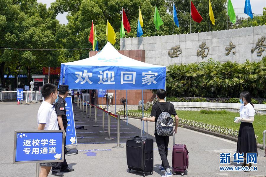 5月15日,在西南大學(xué)的返校學(xué)生專用通道前,學(xué)生按照工作人員和志愿者的引導(dǎo)有序進(jìn)入校區(qū)。當(dāng)日,重慶西南大學(xué)迎來疫情以來首批返校大學(xué)生。據(jù)介紹,按照疫情防控的需要,重慶市高校2020年春季學(xué)期從5月11日起按照“一校一策”原則,實(shí)行錯(cuò)峰錯(cuò)時(shí)分批次有序開學(xué)復(fù)課。新華社記者劉潺攝
