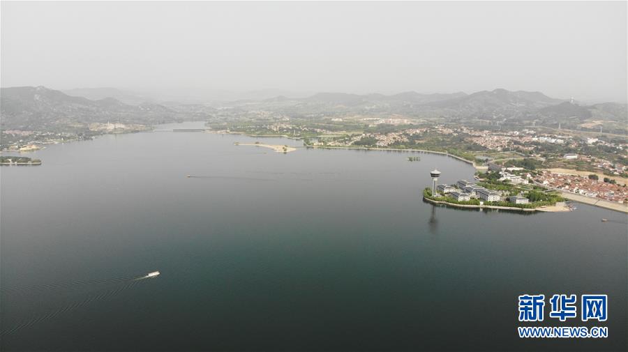 這是5月17日拍攝的雪野湖景色(無人機(jī)照片)。山東濟(jì)南風(fēng)景區(qū)——雪野湖波光粼粼,岸邊綠樹環(huán)抱,加上星星點點的帆船在湖面搖曳,景色宜人。新華社記者王凱攝