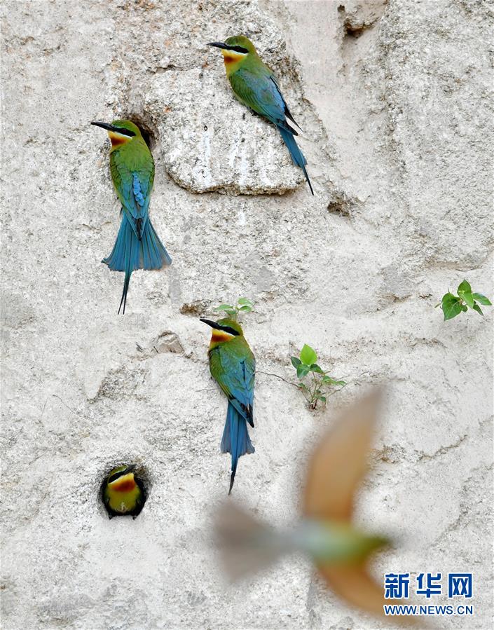 這是5月19日在廈門五緣灣栗喉蜂虎自然保護區(qū)拍攝的兩只栗喉蜂虎。近日,大批栗喉蜂虎來到廈門五緣灣栗喉蜂虎自然保護區(qū)棲息、繁殖。新華社記者魏培全攝
