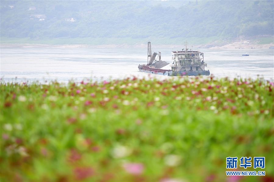 5月20日,在重慶市巴南區(qū)木洞鎮(zhèn)開滿格桑花的長江岸邊,遠處航道上一艘輪船緩緩駛過。近日,重慶市巴南區(qū)木洞鎮(zhèn)長江岸邊的格桑花競相開放,吸引游客前來賞花觀景。新華社記者唐奕攝