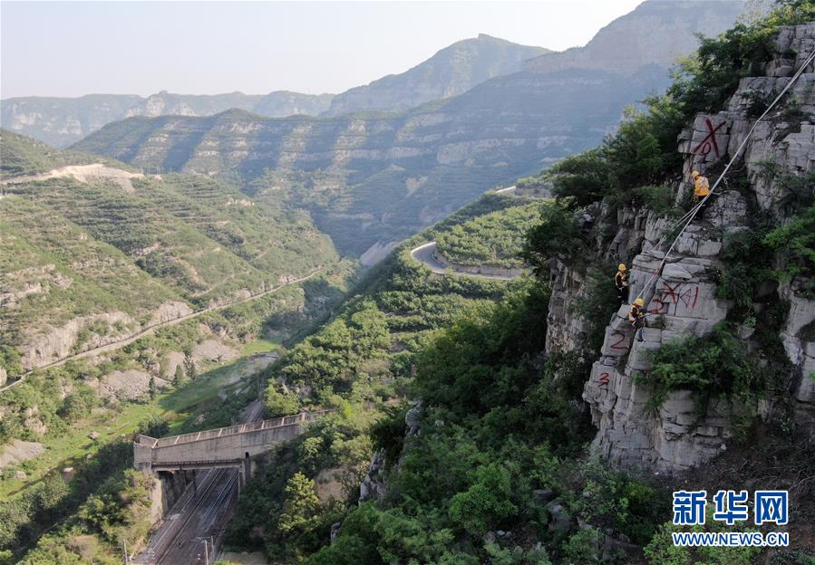 在太行山深處的中國(guó)鐵路鄭州局集團(tuán)有限公司月山工務(wù)段,有一群被稱為捅山工的人。每年汛期來(lái)臨前,他們要對(duì)山體進(jìn)行檢查、清理,在懸崖峭壁間“行走”,揮動(dòng)著手中的鋼釬,排除威脅鐵路行車(chē)安全的危石。
