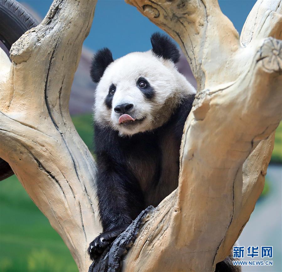 5月21日,大熊貓“青城”在鞍山市二一九動物園大熊貓館適應(yīng)新環(huán)境。當日,兩只分別來自中國大熊貓保護研究中心雅安碧峰峽基地和都江堰青城山基地的大熊貓“阿靈”和“青城”,入住遼寧省鞍山市二一九動物園大熊貓館。經(jīng)過一段時間的適應(yīng)期,它們將正式與市民和游客見面。新華社記者姚劍鋒攝