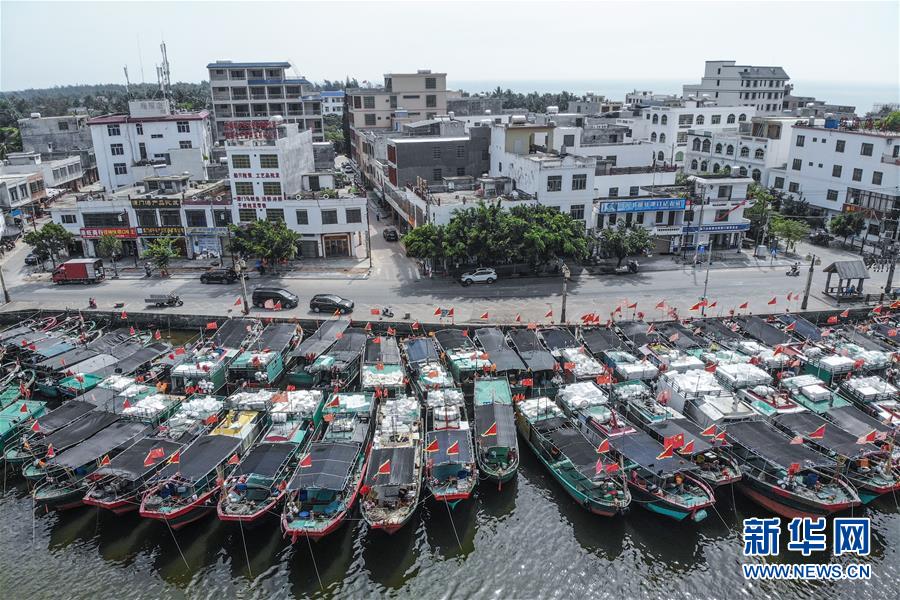 這是5月21日拍攝的??吭诤D檄偤J刑堕T鎮(zhèn)的漁船(無人機(jī)照片)。5月1日12時(shí)起,我國渤海、黃海、東海和北緯12度以北的南海海域進(jìn)入海洋伏季休漁期。海南瓊海市潭門鎮(zhèn)的漁民利用休漁時(shí)間對船體、機(jī)械設(shè)備、網(wǎng)具等進(jìn)行維修、保養(yǎng),保證休漁結(jié)束后以最好狀態(tài)出海捕撈。新華社記者張麗蕓攝