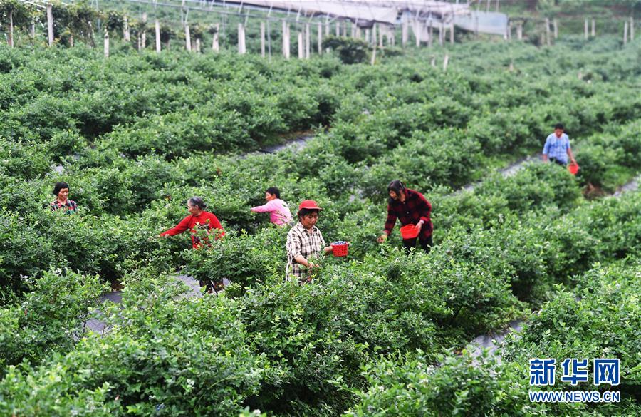 5月21日,村民在茨竹鎮(zhèn)大面坡村藍桂香園藍莓基地采摘藍莓。近日,位于重慶市渝北區(qū)茨竹鎮(zhèn)大面坡村的600余畝藍莓陸續(xù)進入采摘期。近年來,茨竹鎮(zhèn)探索“公司+基地+農(nóng)戶”的模式,利用良好的自然條件,積極發(fā)展高山藍莓產(chǎn)業(yè),在取得良好經(jīng)濟效益的同時,有效帶動當(dāng)?shù)卮迕窬蜆I(yè)增收。新華社記者王全超攝