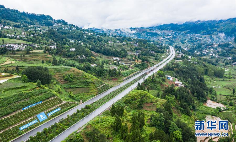 這是正習(xí)高速公路羊磴至夜郎路段(左側(cè)道路)(無(wú)人機(jī)照片,5月21日攝)。新華社記者陶亮攝