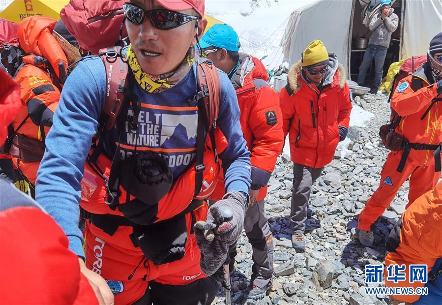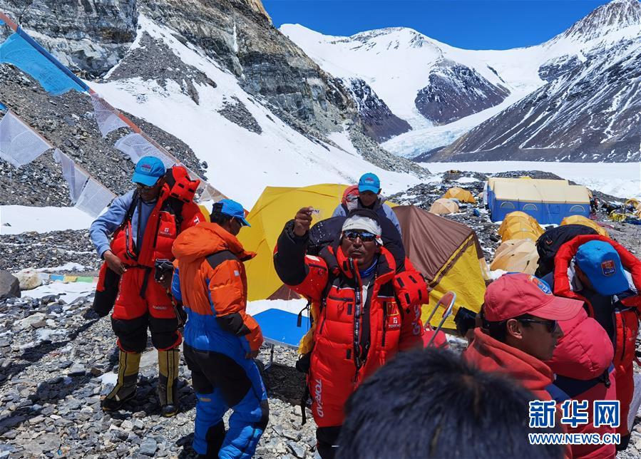 5月24日,2020珠峰高程測(cè)量登山隊(duì)部分人員準(zhǔn)備從海拔6500米的前進(jìn)營地出發(fā)。新華社特約記者拉巴攝