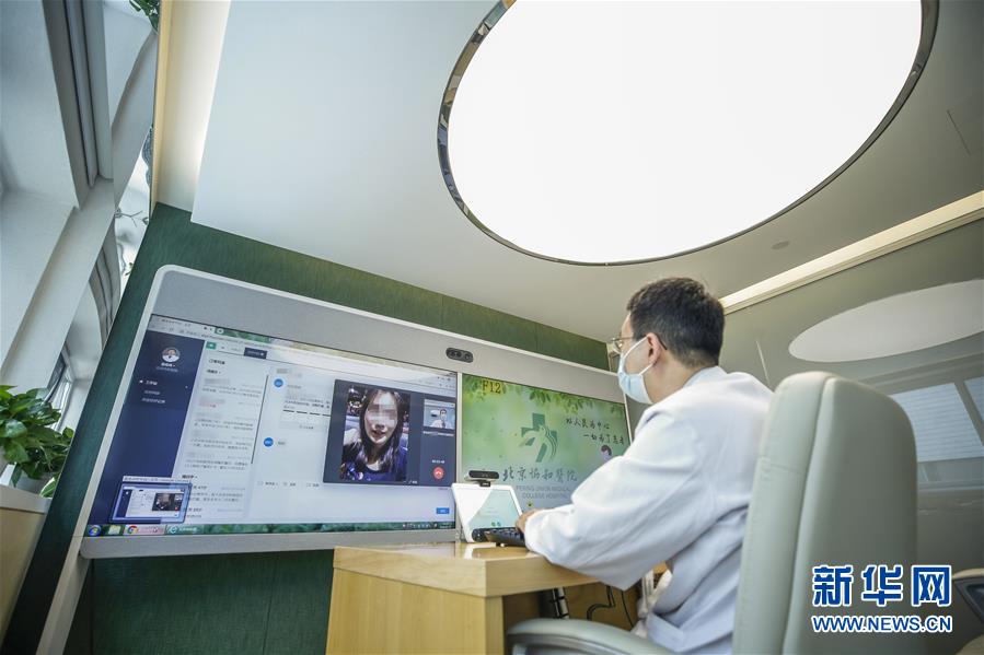 5月25日,北京協(xié)和醫(yī)院內分泌科醫(yī)生張化冰在遠程醫(yī)學中心出診。新華社記者張玉薇攝