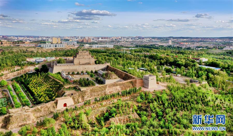 5月24日拍攝的樹林環(huán)繞的榆林市鎮(zhèn)北臺(tái)(無人機(jī)照片)。 2017年4月起,地處毛烏素沙漠南緣的陜西省榆林市開展主城區(qū)百萬畝生態(tài)圈及環(huán)城防護(hù)林帶建設(shè),對荒山荒地荒沙、撂荒地、不宜耕作土地、閑置土地進(jìn)行造林綠化,對低效林地進(jìn)行提升改造。2019年11月,榆林市被授予“國家森林城市”稱號(hào)。昔日區(qū)域內(nèi)的裸露土地全面綠化,城市及周圍處處綠樹成蔭,呈現(xiàn)出一派“塞上森林城”的美景。 新華社記者陶明攝