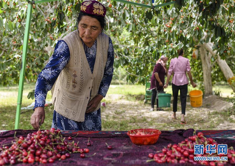 時(shí)至5月下旬,塔克拉瑪干沙漠邊緣的新疆莎車縣米夏鎮(zhèn)數(shù)千畝櫻桃樹(shù)碩果累累,吸引游人前來(lái)觀光采摘。近年來(lái),深度貧困的南疆四地州將特色林果業(yè)與旅游業(yè)相結(jié)合,助力百姓脫貧增收。新華社記者王菲攝