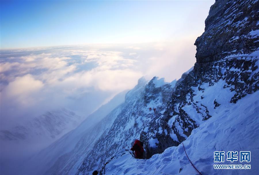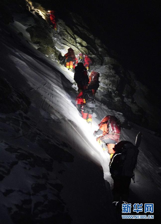5月27日,2020珠峰高程測(cè)量登山隊(duì)正在向珠峰峰頂挺進(jìn)。新華社特約記者扎西次仁攝